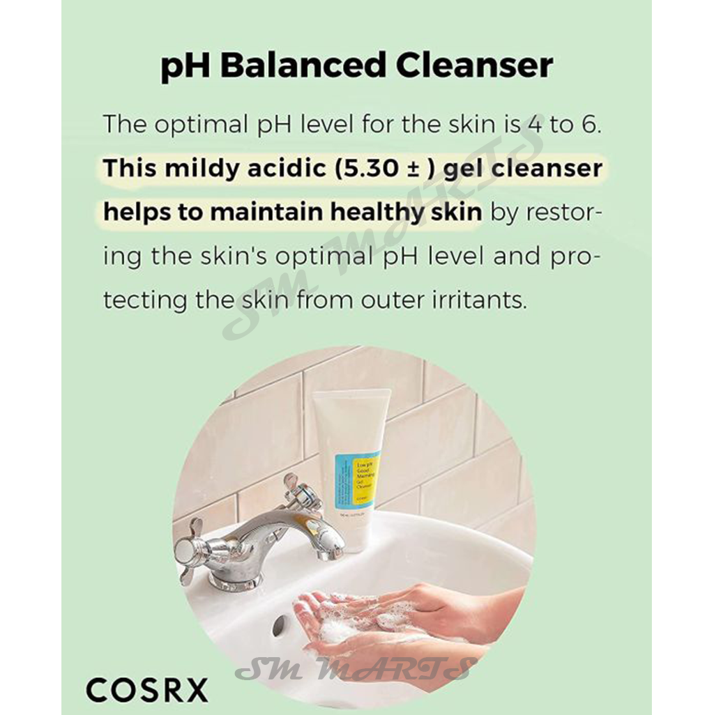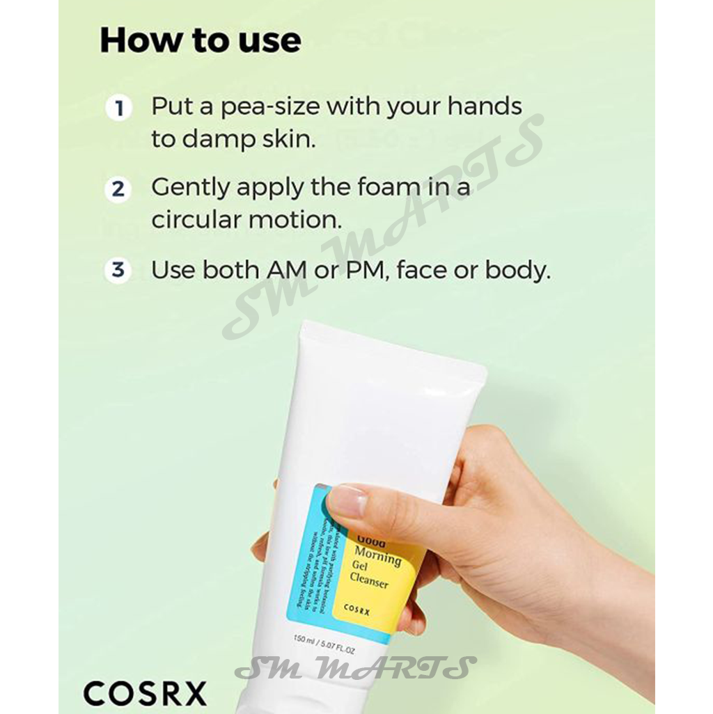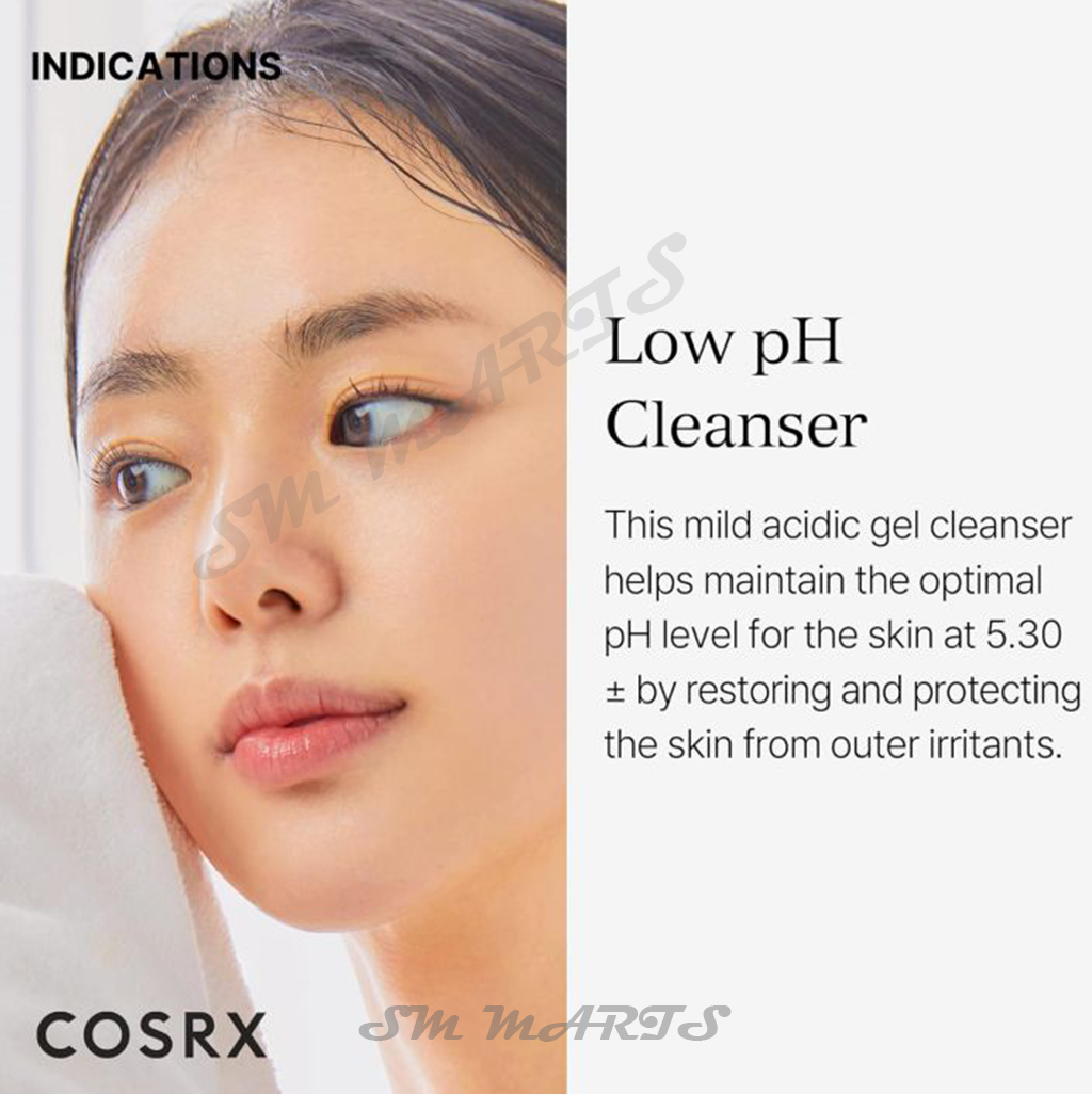 COSRX Low pH Good Morning Gel Cleanser হলো একটি জেন্টল ফেসওয়াশ, যা ত্বকের ন্যাচারাল pH লেভেল বজায় রেখে মুখ পরিষ্কার করে। এটি বিশেষভাবে তৈরী করা হয়েছে সকালবেলার স্কিনকেয়ার রুটিনের জন্য, তবে যে কোনো সময় ব্যবহার করা যায়। ত্বককে অতিরিক্ত শুষ্ক না করে গভীরভাবে পরিষ্কার করে এবং ত্বকের আর্দ্রতা ধরে রাখতে সাহায্য করে।